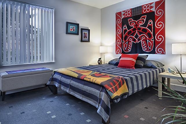 The paddles on the wall were made by 16 year old Native girls. Indigenous Art was generously lent to the project by Quintana Gallery in Portland, Oregon.