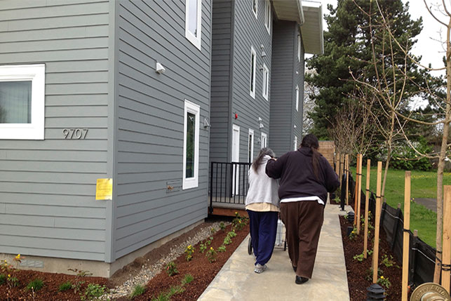 Residents moving into NAYA's affordable housing project Kah San Chako Haws, designed by Emmons Modular.