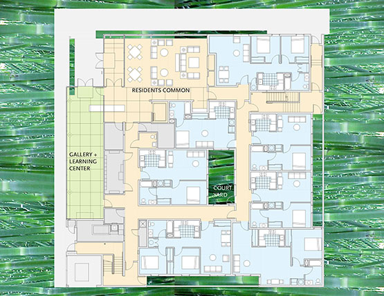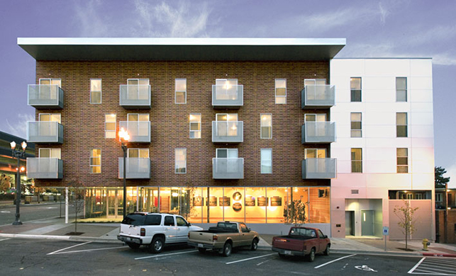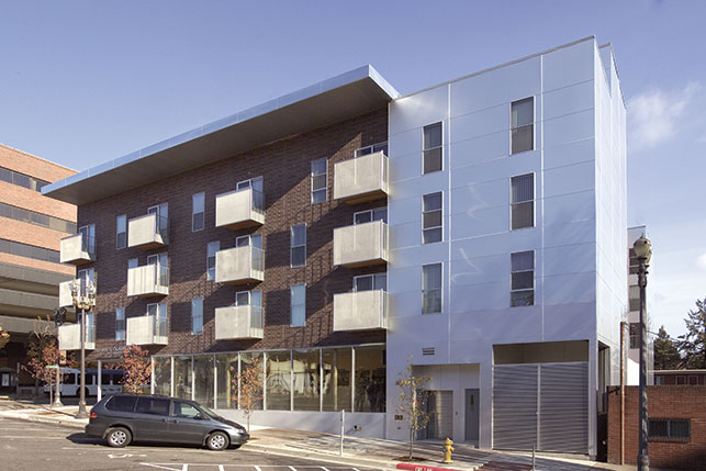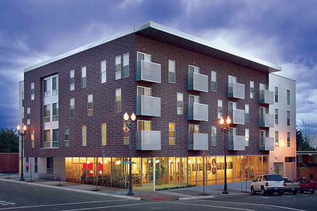 Lewis & Clark Plaza, Vancouver, Washington, is a 48 unit residential project for seniors. There is a mix of studios, one and two bedroom units. On the ground floor is a common living room, and a small historical museum, open to the public, where residents can be docents and mingle with children and families from the community.
