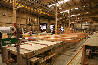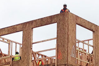 A conventionally constructed project (image bottom right) exposes materials to weather. Accuracy, plumb and level are more at risk on an on-site project due to exposure and material drying on-site.